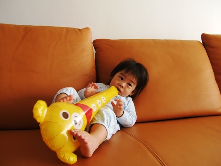 このおもちゃはジェイスの誕生祝いにお友達のYちゃんから頂いたもので、確か息子が8ヶ月を過ぎた頃からかなり興味を示すようになったのを覚えています。