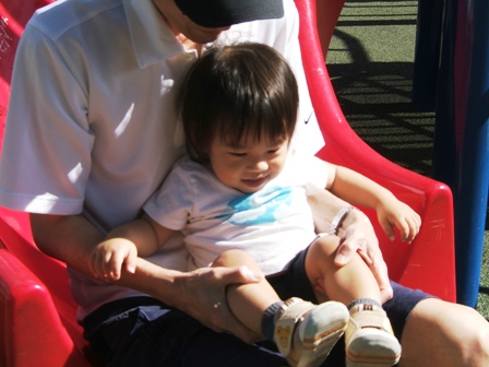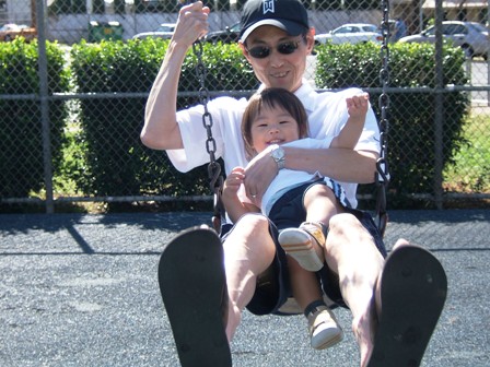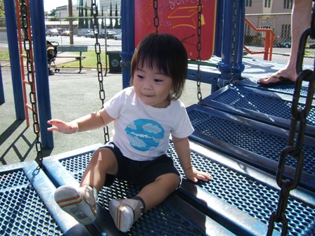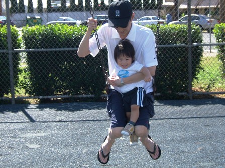 パパ、ブランコ担当。どうぞヨロピクです。すでにAloha Mommyは炎天下でちょっとくったり・・・