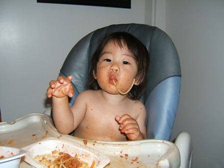 ジェイスに一口だけ味見をさせたら、いつも見せる”もっと。もっと。”のベビーサインをしてくれました。なんて優しい子。親バカなママとしては嬉しかったなー。