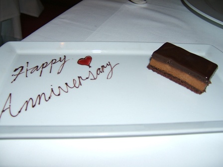 お皿には、"Happy Anniversary" 結婚記念日おめでとう、と書かれていました。
