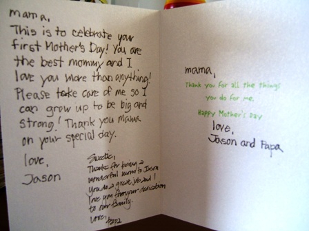 母の日にもらった可愛いカードには、ジェイス(?)とパパからの素敵なメッセージが。