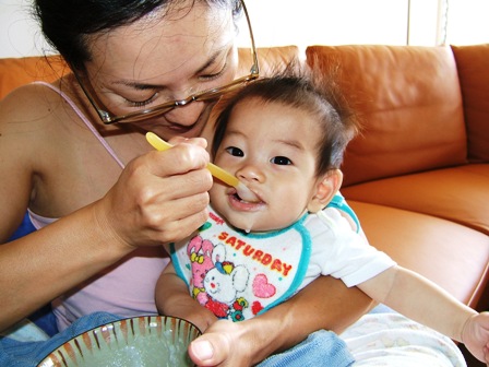 ジェイスも今までずっとママのおっぱいだけを飲んでいましたが、7ヶ月に入ってから離乳食を始めました。