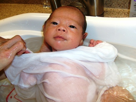 ジェイスのへその緒がポロリととれたのは3週目の終わりごろ。やっとお風呂デビューです!