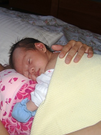 おっぱいを飲みながらママのとなりで寝るのが落ち着くみたい。