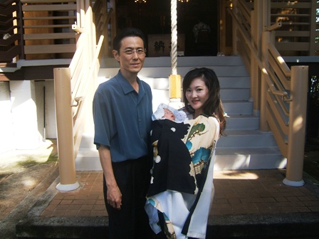 そこで前日の8日、パパ、義理の両親、Aloha Mommyの母と一緒にジェイスの初宮参りに行ってきました。この日は大安でお日柄もよく、初宮参りにはうってつけの日。