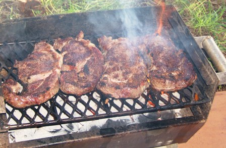 パパはいつもステーキ担当。 煙もくもくの中で、頑張って焼いてくれたね。