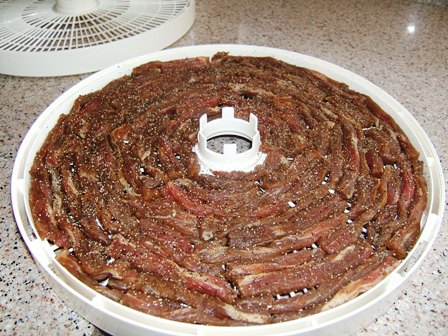 今回はトレイ3枚分のビーフジャーキー 仕上がったビーフジャーキーをお好みで