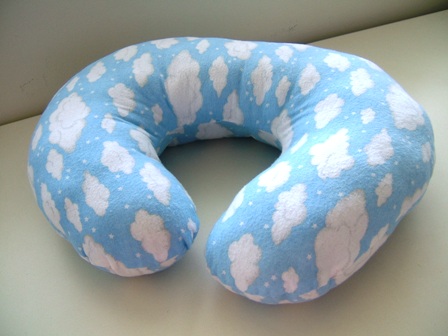 お空と雲の模様がかわいい授乳クッション。 ソフトな手ざわりのベビー用ブランケット。