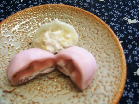 「雪見だいふく」のアイスの代わりにクリームが入っているお菓子だ。
