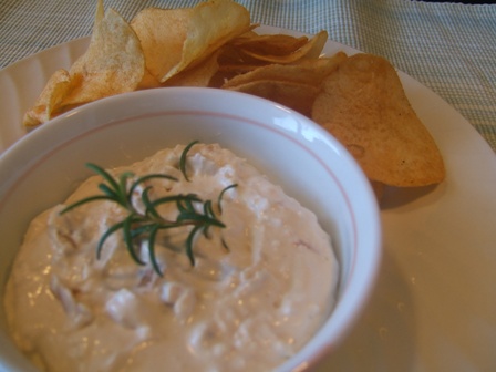 まずは、ポテチとアサリ入りディップ。レシピは義理の母から頂きました。