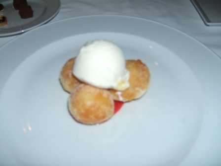 パッションフルーツ味のマラサダ(ポルトガル風揚げパン)、グアバピューレ、パイナップル・ココナッツアイスクリーム