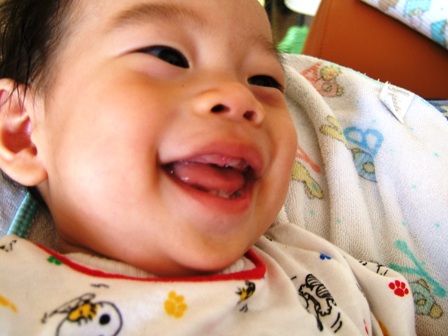 そして7ヶ月半で上の歯が一本、ちらっと顔を出しました。
