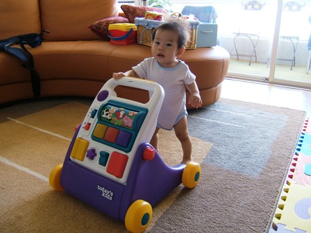 ”つかまり歩き”も始めました! あらっ、生意気に片手運転とかも